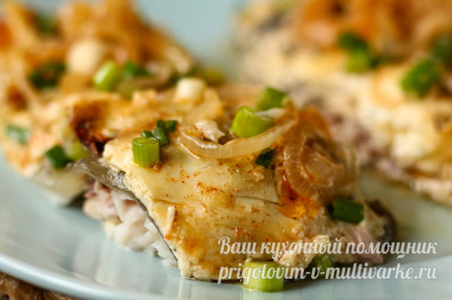 Перед подачей рыбу лучше разделать на порционные кусочки, отделив филе от крупных хребтовых костей. В качестве гарнира подойдет отварной рис, гречка, макаронные изделия, запеченный или вареный картофель. И обязательно – салат из свежих овощей или овощная нарезка.